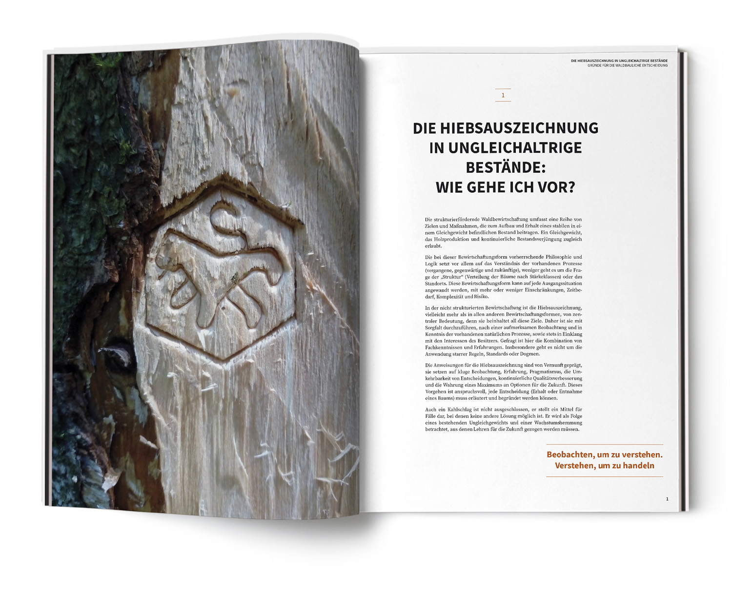 Die Hiebsauszeichnung ist eine der wichtigsten Maßnahmen der Forstwirtschaft. In bisher nicht strukturierten Wäldern ist sie, vielleicht mehr als in allen anderen Bewirtschaftungsformen, von zentraler Bedeutung, denn sie vereint alle Ziele rund um den Aufbau und Erhalt eines stabilen, strukturreichen, sich selbst regenerierenden Bestands. Ein Gleichgewicht, das Holzproduktion und kontinuierliche Bestandsverjüngung zugleich erlaubt.